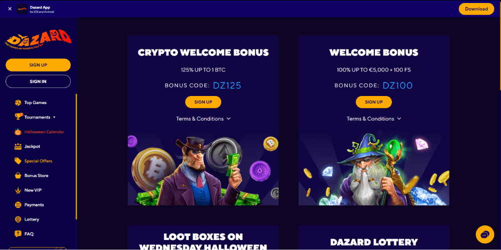 Dama N.V. appears to have had a fruitful 2021, as the firm has released many online casinos. They have a wide variety of brands, and the newest one, Dazard, offers access to over 3000 games. There are also several slot tournaments, lotteries, and a lucrative VIP programme for its most devoted and dedicated players, in addition to a substantial Welcome Bonus and spectacular daily and weekly promotions up for grabs. New players at Dazard Casino who make a minimum $20 deposit will receive a generous 100% Welcome Bonus worth up to AU$7,500, in addition to 100 free spins.