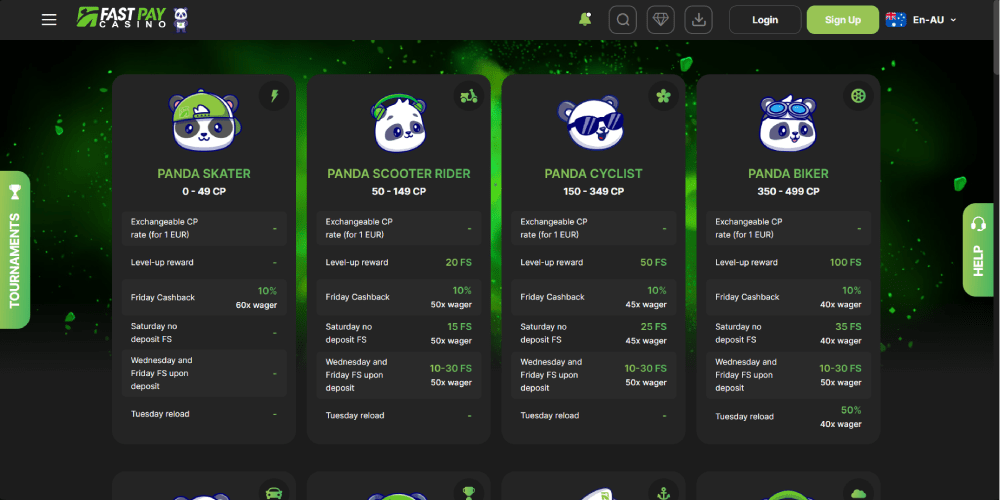 Free spins are awarded as a member of FastPay's VIP programme advances through its tiers. You will get more spins as you level up, starting with 20 at level 2 and going all the way up to 300 at level 7! When you reach level 1, you do not receive any bonus spins. The maximum amount that can be won from the free spins is $50, and the winnings must be gambled at least 10 times before they can be cashed out. Instead of free spins, the rewards for attaining higher levels after level 7 are monetary amounts ranging from $150 at level 8 to $2,500 at level 10. All winnings must be claimed by sending an email to [email protected]. Like the free spins, the cash rewards are subject to a 10x wagering requirement.