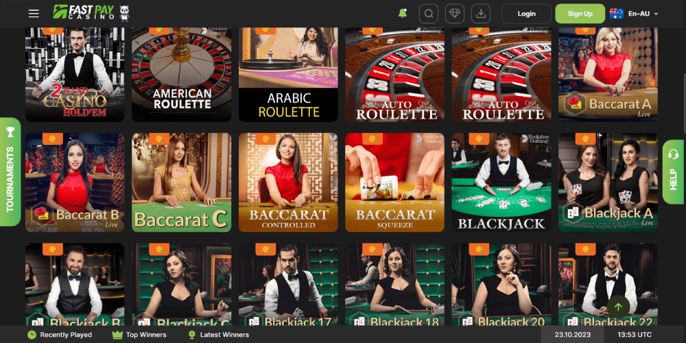 The games available on FastPay are from some of the best developers in the industry. In the "Lobby," you will find a handpicked assortment of the casino's most popular games; in "Slots," you will find FastPay's whole library of thousands of slot games; and in "Crypto Games," you will find games that can be played using Bitcoin. For games that utilise the Hold & Win feature and offer the chance to win incredible jackpots and prizes, check out "Hold & Win," "Megaways," "Bonus Buy," and "Live," respectively. You may arrange the games by developer or search for them by name.