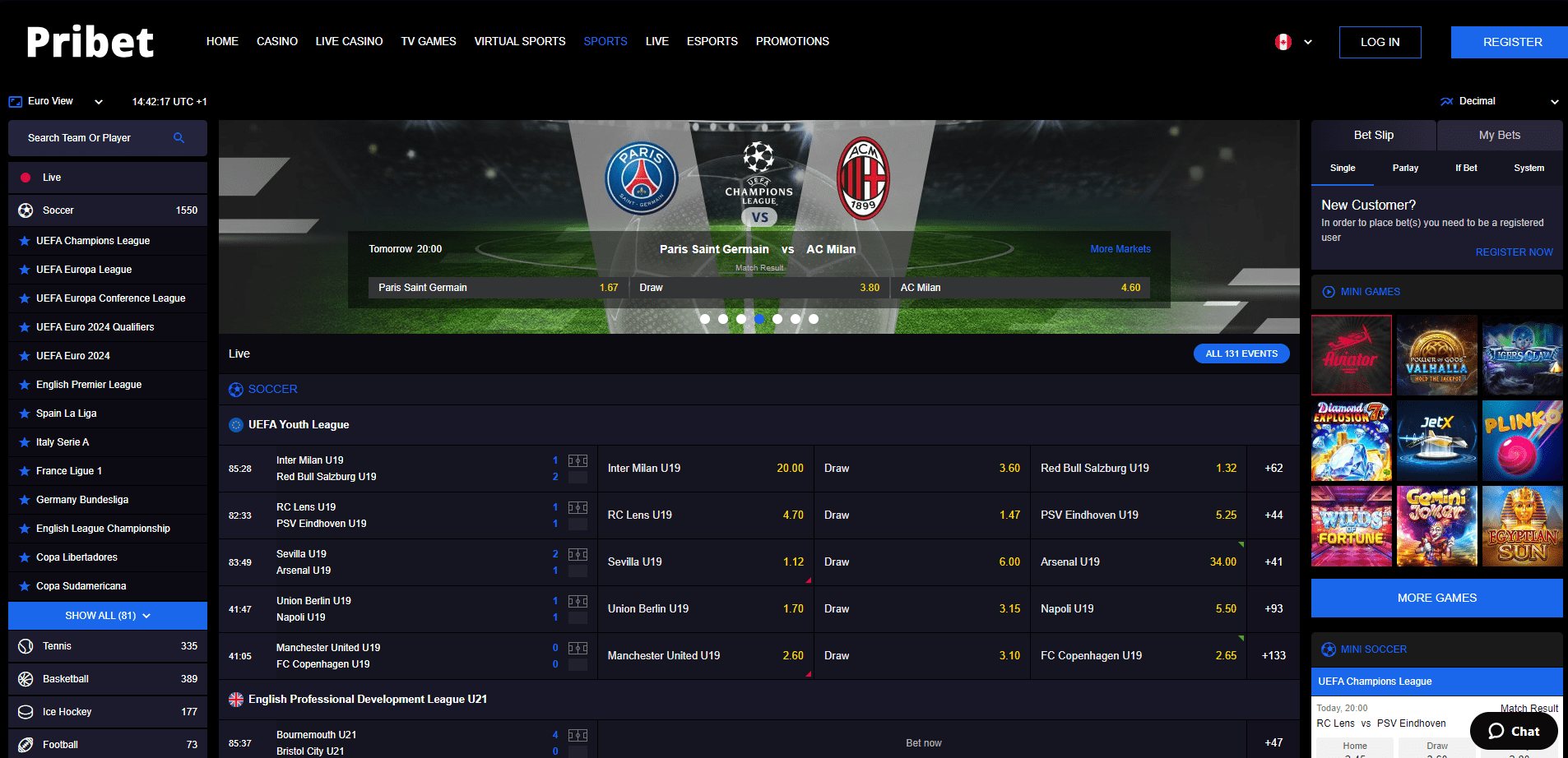 PriBet offers a wide range of gaming options, including well-known and recently released slot games, as well as card and table games like blackjack, roulette, baccarat, poker, and more. In the sportsbook area, users can access pre-match and in-play markets for traditional, digital, and electronic sports, covering sports such as football, tennis, basketball, eSports like Counter-Strike: Global Offensive and League of Legends, and much more.