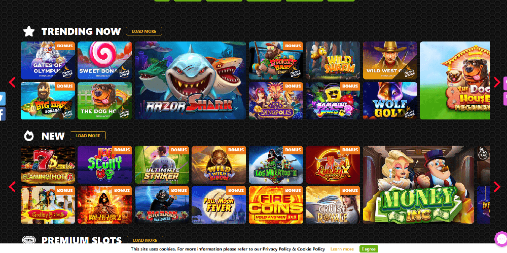 Der „Casino“-Eingang befindet sich oben auf dem Bildschirm und dient als Portal zu den zahlreichen Spielräumen. Zusätzlich zu den üblichen Abschnitten fügen wir oft auch saisonale Abschnitte hinzu, wie zum Beispiel den aktuellen Ho-Ho-Ho-Bereich, der voller Spiele zum Thema Feiertage ist. Die Registerkarten „Neu“, „Hot“ und „Top“ bieten auch Spieloptionen. Es können sowohl Entwicklernamen als auch einzelne Spieletitel gesucht werden. Die gute Nachricht ist, dass Sie die meisten Spiele im Spaßmodus spielen können, ohne sich überhaupt anmelden zu müssen.
