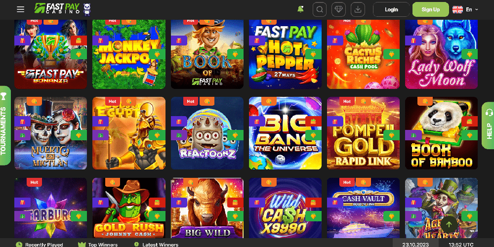 The games available on FastPay are from some of the best developers in the industry. In the "Lobby," you will find a handpicked assortment of the casino's most popular games; in "Slots," you will find FastPay's whole library of thousands of slot games; and in "Crypto Games," you will find games that can be played using Bitcoin. For games that utilise the Hold & Win feature and offer the chance to win incredible jackpots and prizes, check out "Hold & Win," "Megaways," "Bonus Buy," and "Live," respectively. You may arrange the games by developer or search for them by name.